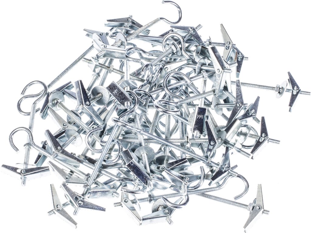 Kétkaros, rugós, szétnyíló rögzítőelem, a külső végén nyitott kampóval, pl. kisebb dekorációs elemek rögzítéséhez (függöny, virágtartó stb.). Felhasználható drótból készült konyhai, fürdőszobai, műhely használati eszközök, polcok, tartók, stb. felakasztásához is. Üreges téglafalakban, üreges mennyezeteknél, álmennyezeteknél, egyéb lemezeknél és tábláknál (gipszkarton falaknál stb.) használható. Méret 4 × 75 mm, ezüst színű, csomagolás 50 db.
