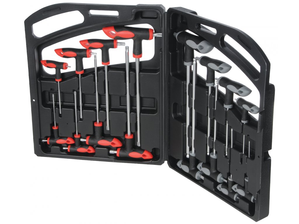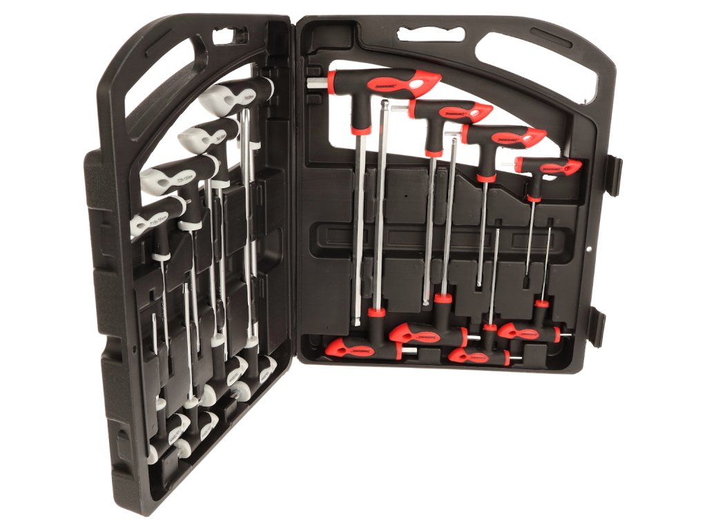 A készlet imbuszkulcsokat tartalmaz: 2; 2,5; 3; 4; 5; 6; 8 és 10 mm és TORX: T10; T15; T20; T25; T30; T40 és T50.