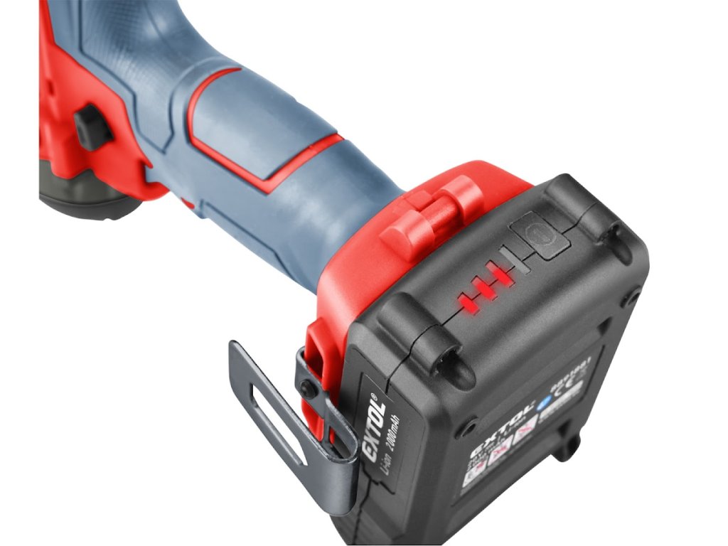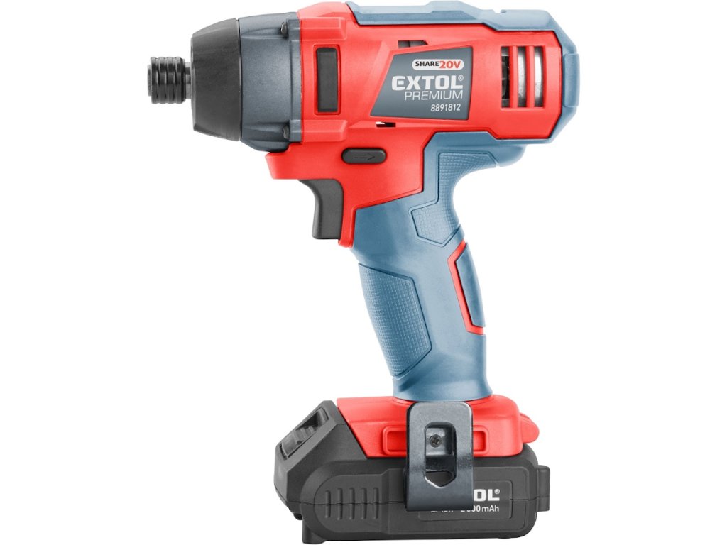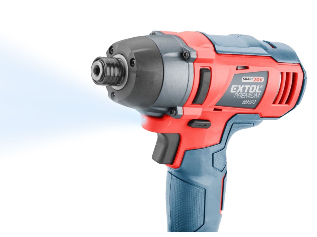 A könnyű és erőteljes, vezeték nélküli, legfeljebb 180 Nm nyomatékú ütközés biztosítja a csavarok meghúzásához és lazításához szükséges teljesítményt. Az ütközési nyomaték növeli a csavarkulcs erejét csavarozáskor, ugyanakkor csökkenti az akkumulátor fogyasztását a meghúzás során. Ezért a csavarkulcs sokkal hatékonyabb a csavarozásban, mint az akkumulátor fúrója, és több csavart is csavar egyetlen akkumulátor töltéssel. A csavar meghúzása megkönnyíti a sebesség automatikus csökkentését, amikor a meghúzott csavar ellenállása és súrlódása növekszik. A hatszögletű tartóval ellátott fej horonyos bit- és bittartók zárjával van felszerelve. A teljesen fém sebességváltó nagy terhelések esetén is hibátlan működést biztosít, és hozzájárul a munka során keletkező hő jobb eloszlatásához. A csavarkulcs LED-es zseblámpával van felszerelve, amely munka közben megvilágítja a munkaterületet. Az akkumulátorral együtt az 1,6 kg-os kis súlynak köszönhetően a csavarkulcs hosszabb munkavégzésre is használható. Normál munkavégzéshez elegendő egy vagy két 2000 mAh-s akkumulátor, amelyet gyorsan feltölthet egy gyorstöltőben, az igényesebb vagy hosszabb munkavégzéshez nagyobb, 4000 mAh kapacitású akkumulátorokat ajánlunk. Az akkumulátor töltésjelzővel rendelkezik, és az EXTOL SHARE20 V sorozat minden típusú szerszámában használható. A Li-ion akkumulátor nagyon lassan veszít energiát az önkisülés miatt, és hosszú ideig töltődik és használatra kész.- Akkumulátor: 20 V Li-ion súly akkumulátorral: 1,6 kg- Akkumulátor kapacitása: 2000 mAh- L / P futás: igen- max. nyomaték: 180 Nm- Akkumulátor töltés kb.: 55 perc- sebesség: 0 - 2800 / perc- sokkok száma: 0 - 3600 / perc- szerszámhordozó: 1/4" hatszög
