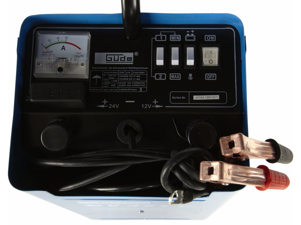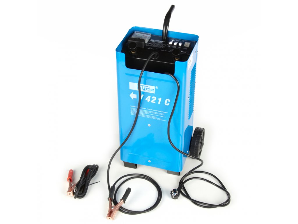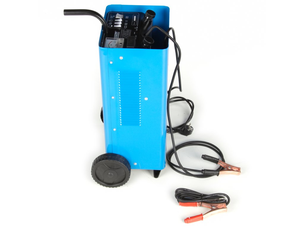 Profi indító és akkumulátortöltő készülék, gyorstöltésre is alkalmas. Fogantyúval szerelt mobil kivitel, nagy átmérőjű kerekek. Felszerelés: profi töltőkábel, szigetelt markolatú csipeszek, árammérő, póluscsere elleni védelem, hőkapcsoló, 50 A-es kiegészítő biztosító, feltöltési idő mérése.