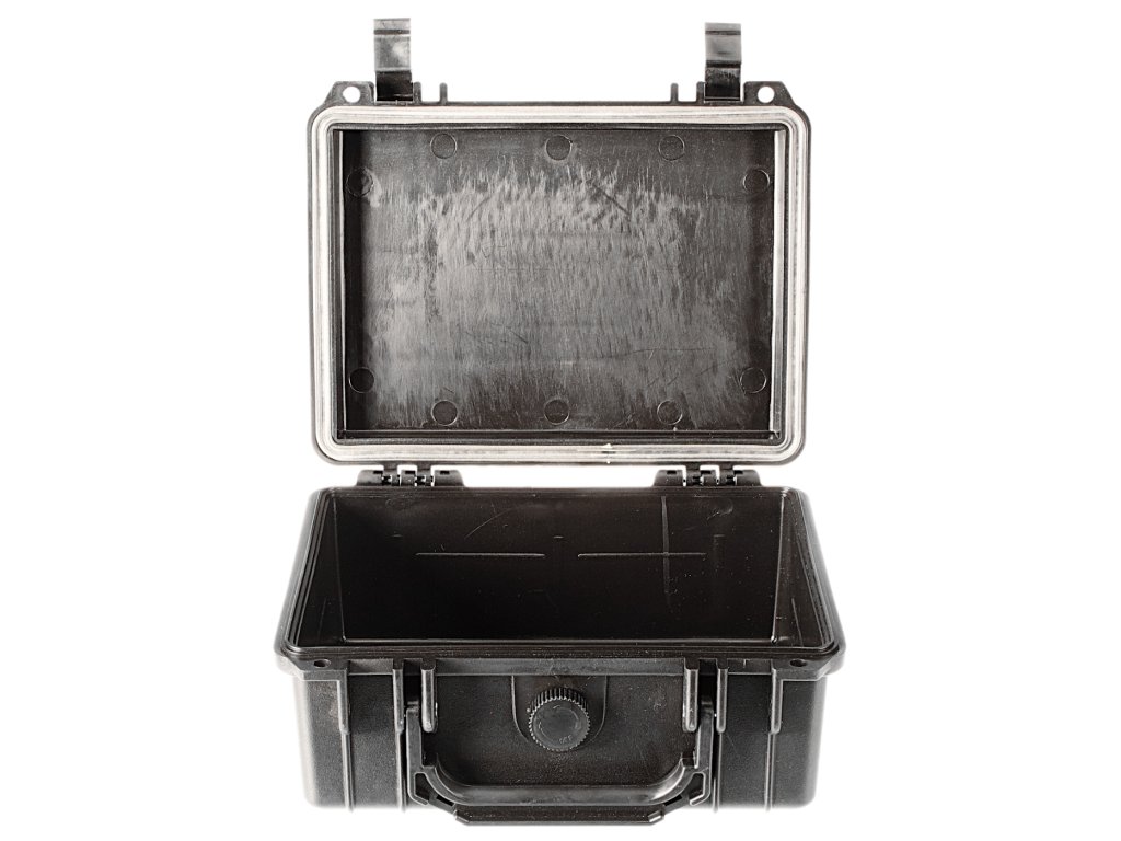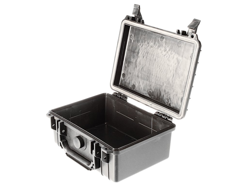 A 232 × 192 × 111 mm külső méretű műanyag koffer vízzáró (fröcskölő vízzel szembeni) gumitömítéssel, valamint lakat vagy plomba elhelyezésére szolgáló két nyílással és egy oldalsó lehajtható foganytúval rendelkezik. Az anyaga PP. Belső méretek: 208 × 146 × 94 mm.