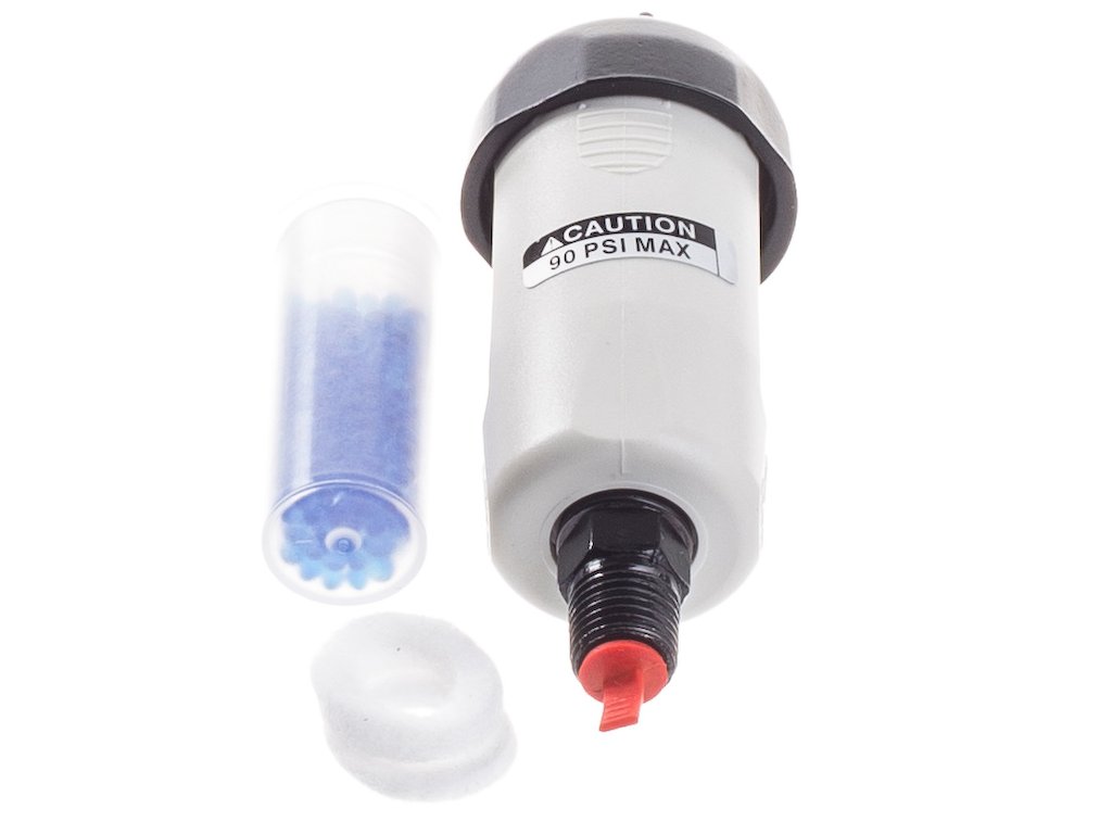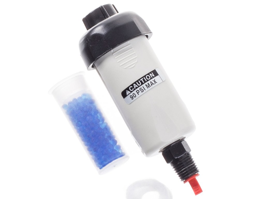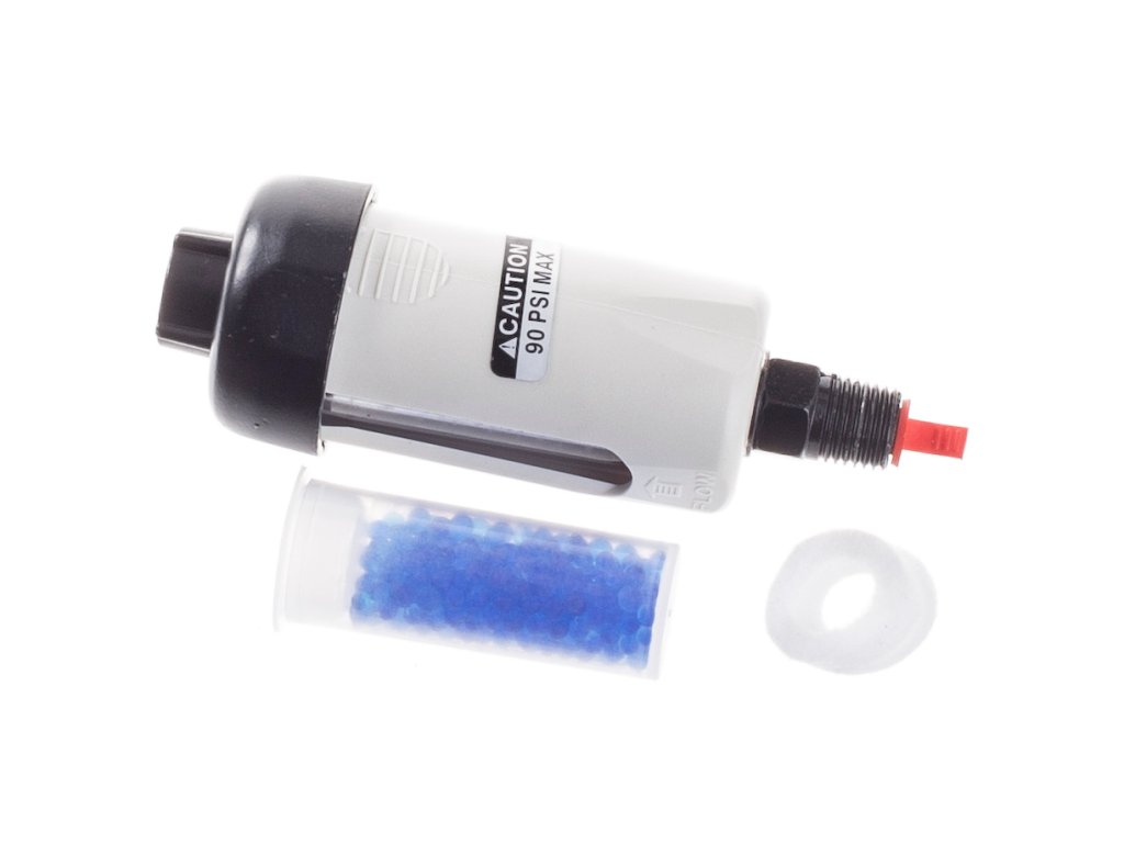 A felső töltésű pisztolyra szerelve leválasztja a levegőből a nedvességet és az olajat. Bemeneti csavarzat 1/4", üzemi nyomás 90 PSI, üzemi hőmérséklet 5 és 60°C között, a tartály térfogata 9 g.
