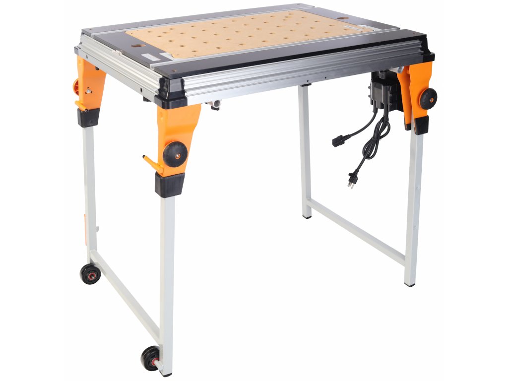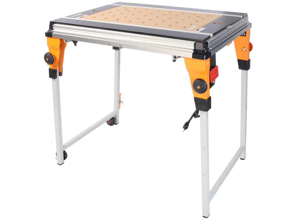 Univerzális famegmunkáló asztal számos tartozékkal a famegmunkáláshoz kapcsolódó feladatok egész sorához. Szigetelt főkapcsoló (3500 W) és beépített csatlakozóaljzat elektromos eszközök csatlakoztatásához; térddel vezérelhető stop gombbal. TWX7-hez tartozó befogók rögzítéséhez alkalmas nyílásokkal rendelkező munkalappal. Az egyszerűen beszerelhető moduloknak köszönhetően a munkaközpont olyan géppé alakítható, amilyenre épp szüksége van. Csavarokat tartalmaz a keret/toldat kiegyenesítéséhez, a gyalu egyszerű kalibrálásáért, minek köszönhetően tökéletesen sík munkafelületet kap. A pozicionáló kerekek jelentős mértékben megkönnyítik a kezelhetőséget, akár kis helyzetigazítás során is. Szállításhoz vagy tároláshoz is egyszerűen összecsukhatja. Tartozékként kapható marómodul a TWX7 munkaközponthoz ( rend. sz. 265709 ), TWX7 munkaközpont asztalbővítmény ( rend.sz. 265901 ), TWX7 munkaközpont asztalhosszabbító (rend.sz. 266505 ) és fűrészmodul a TWX7 központhoz ( rend.sz. 255671 ). A csomag mérete: 1 045 × 850 × 370 mm.